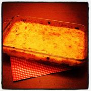 11 – Beurrer un grand moule à gratin et verser la préparation dedans. Tasser un peu avec une spatule.